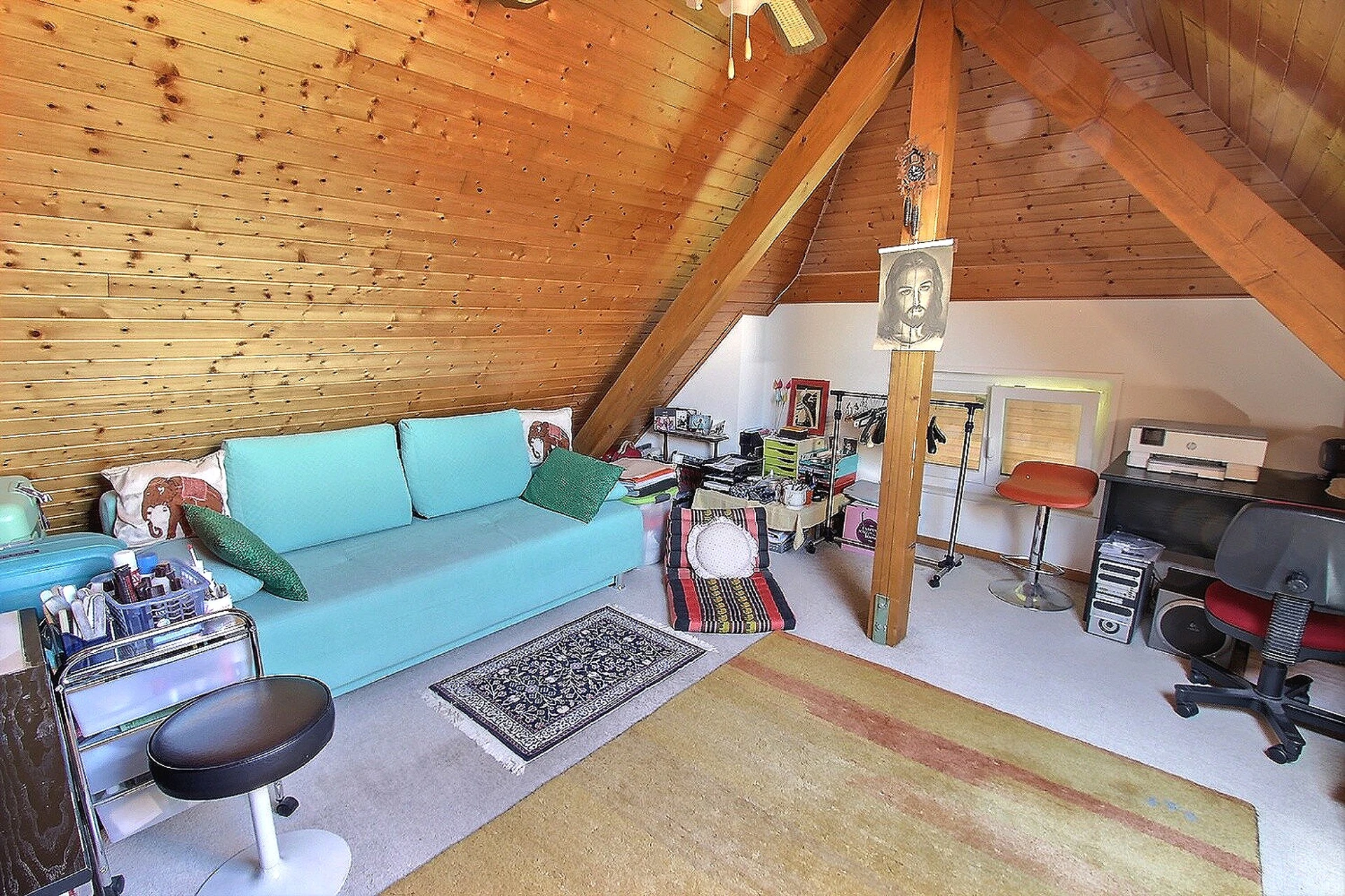À l’étage, une mezzanine aménageable complète le bien. Cet espace polyvalent peut aisément être transformé en bureau, chambre d’amis ou second salon. Une zone de rangement est également à disposition au niveau supérieur.