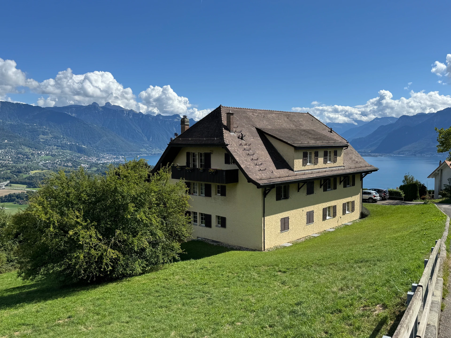 Ce grand appartement de 2,5 pièces + mezzanine est situé au Mont-Pèlerin, au sein d’un petit immeuble de seulement 6 logements. Il bénéficie d’une vue exceptionnelle sur le lac et les montagnes.